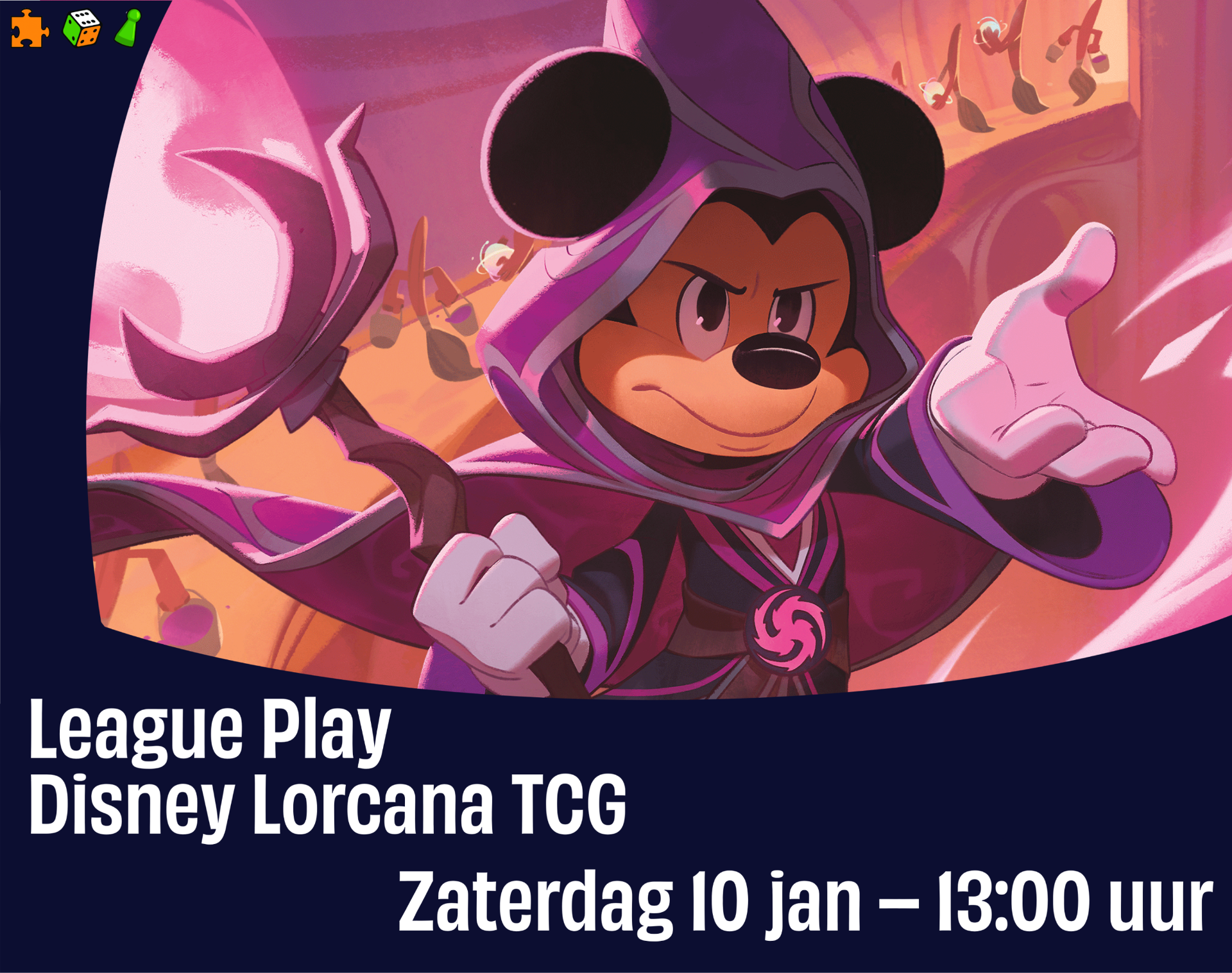 Tijdens de Disney Lorcana League bij Mox spellen komt de magie van het Inklands tot leven! Iedereen is welkom, of je nu net begint of al helemaal bent ondergedompeld in de wereld van Lorcana. Je ontmoet andere spelers, maakt nieuwe vrienden en daagt elkaar uit voor gezellige potjes Disney Lorcana Trading Card Game als een echte Illumineer.