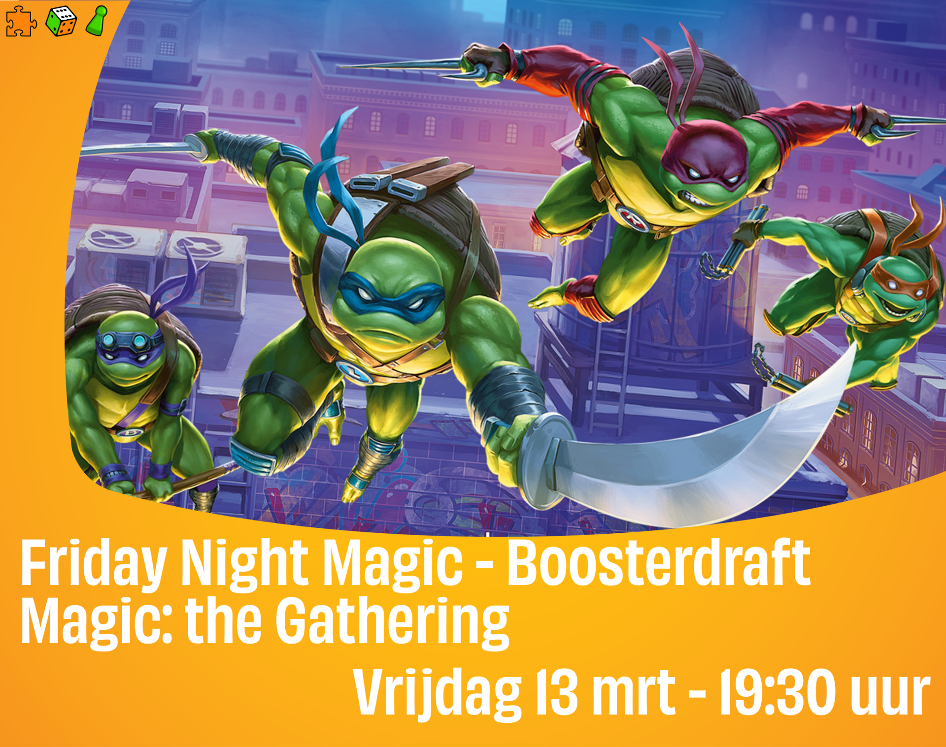 Het formaat van deze Friday Night Magic is: Boosterdraft Teenage Mutant Ninja Turtles