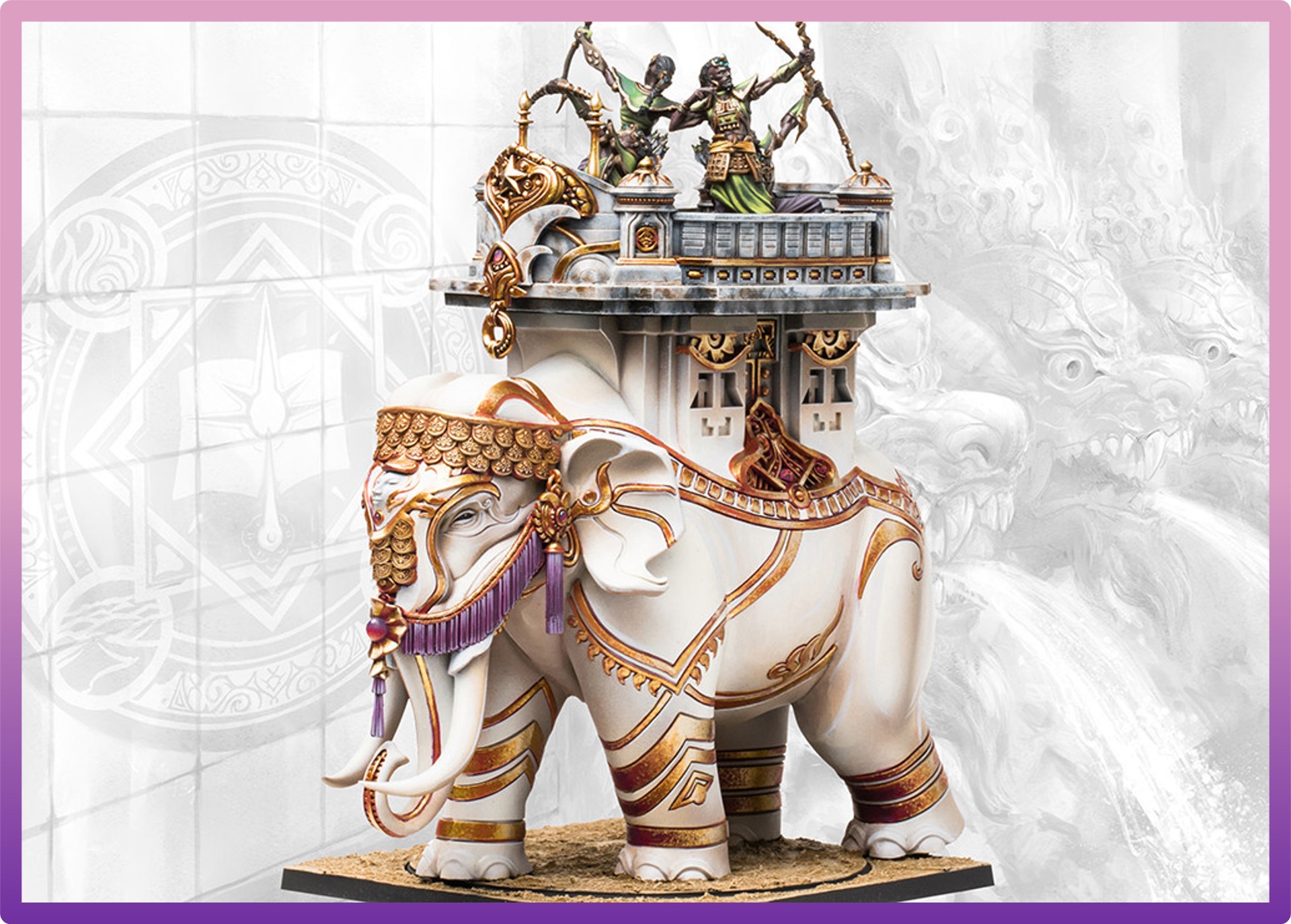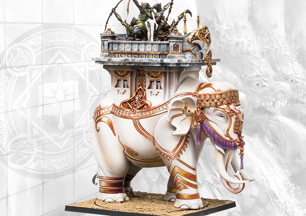 Well-armored and supported by skilled Dhanurveda Archers, the Mahut acts as the hammer of the mortal forces. Excellent at contesting Objective Zones and engaging in prolonged combat, as the archers can fire directly at whoever the Mahut is engaging, further adding to its melee prowess. The Mahut also serves as a favorable method of transportation for none but the most powerful and stylish spellcasters.