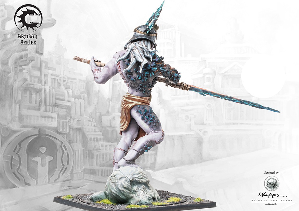 This figure was designed by the team at Para-Bellum in keeping with our aesthetic, and then sculpted by renowned artist Michael Kontraros. This is a dual kit artisan series miniature one that can be constructed to play in the City States or the Nords, with incredible details that make it a presence on a game table, or as a painted model.