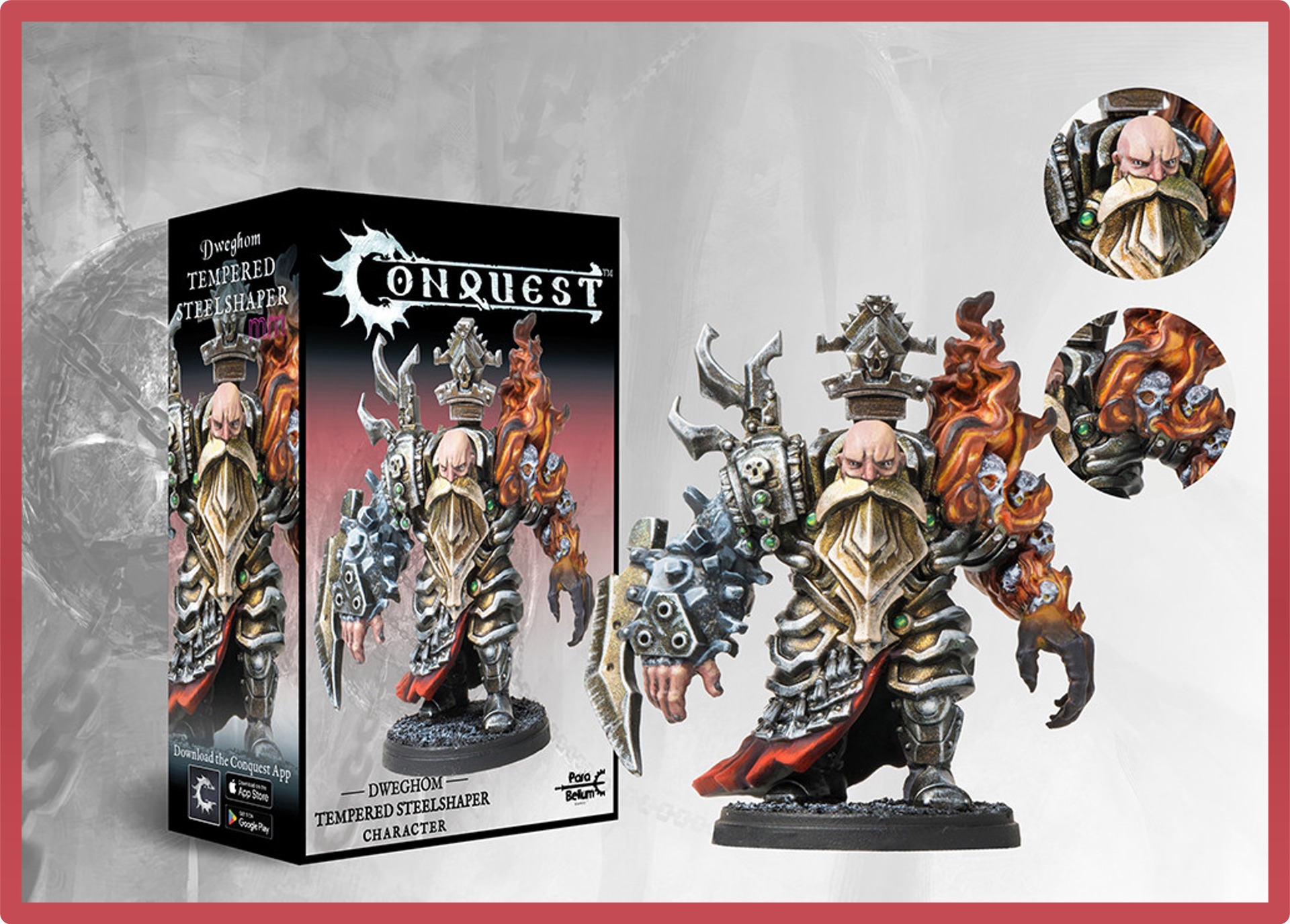 This is a 5th Anniversary, highly crafted and sculpted resin remix edition to update the look of this most important character to the Dweghom army. The eldest and most accomplished of Sorcerers are amongst the few living creatures that regularly interact with the Steelshapers. They are also among the few who can see past the awe they inspire and truly grasp the changes this final transformation brings. On the surface, it becomes impossible to tell where their armor begins and where their flesh ends. Their voices echo hollow and their eyes stare expressionless. They clearly possess a terrifying genius and an unparalleled mental capacity, which they fixate relentlessly on problems about one of their alien interests or an experimental project, to which they ceaselessly devote themselves. Their power itself is entirely alien, different in both invocation and effect from the raw elemental might they wove before. Still, it is none of those things that bring fear to the elder Sorcerers. It is not even the sheer, daunting weight of responsibility that hangs from Steelshaper shoulders, as almost all the functions within a Dweghom Hold and all the works of the Temple Forge depend on their unipue and brilliant innovations, a weight they seem to bare seamlessly with borderline indifference. It is simply that the Elders fear these beings are no longer Dweghom.