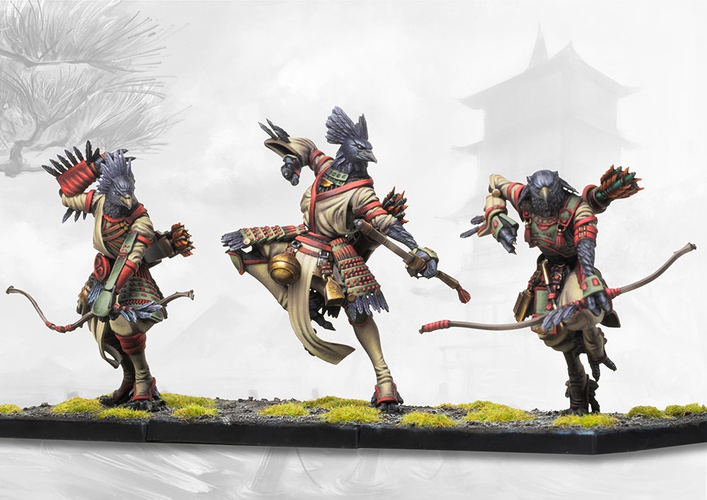 Swift and deadly marksman, the Tengu Ayakashi - Unfettered (Fu) - is your Stand of choice for a  ranged Stand in the Yoroni roster. Able to quickly deploy and project impressive ranged force, the Tengu Ayakashi plays an important role at keeping early aggression at bay whilst supporting your main offensive from the flanks. As troops they offer ranged power to all Regiments as Regiment Leaders however, they are able to transform their regiment to a real ranged harasser quickly deploying and gaining protection from enemy ranged attacks! Given their avian form when a Regiment is only composed of Tengu Bushi and Tengu Ayakashi Stands it also gains the Fly Special Rule!