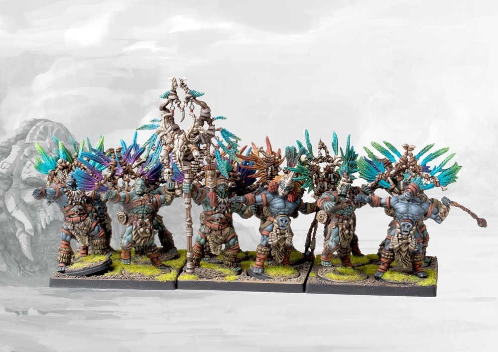 The humble sling they wield is a weapon of surprising efficiency when wielded by a proficient human. In the hands of an experience W’adrhŭn, these primitive weapons become a terror. Backed by the savagery of their wielders, few formations can withstand a double volley followed by a charge of these fearsome warriors, who have cut their teeth hunting the most dangerous of prey on jungle and plains alike.