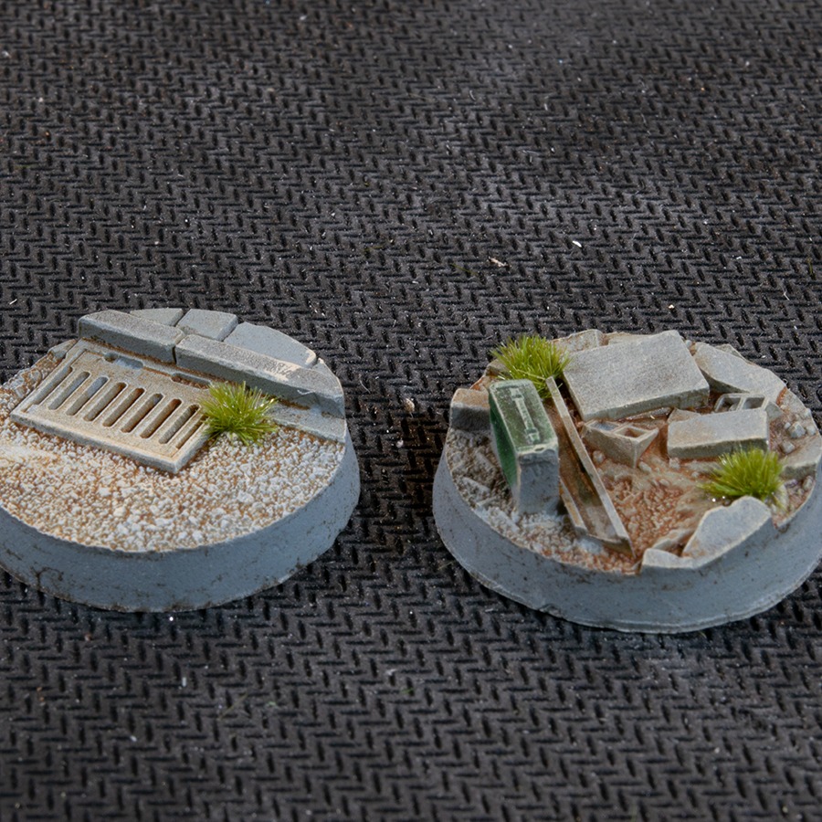This pack contains 10 round Battle Ready Bases 25mm wide in a urban warfare theme.