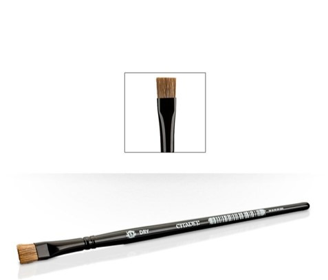 This medium brush (M Dry) features a light ox hair and synthetic blend of bristles for stiffness and durability. The flat profile means a consistent coverage on raised areas - ideal for drybrushing!