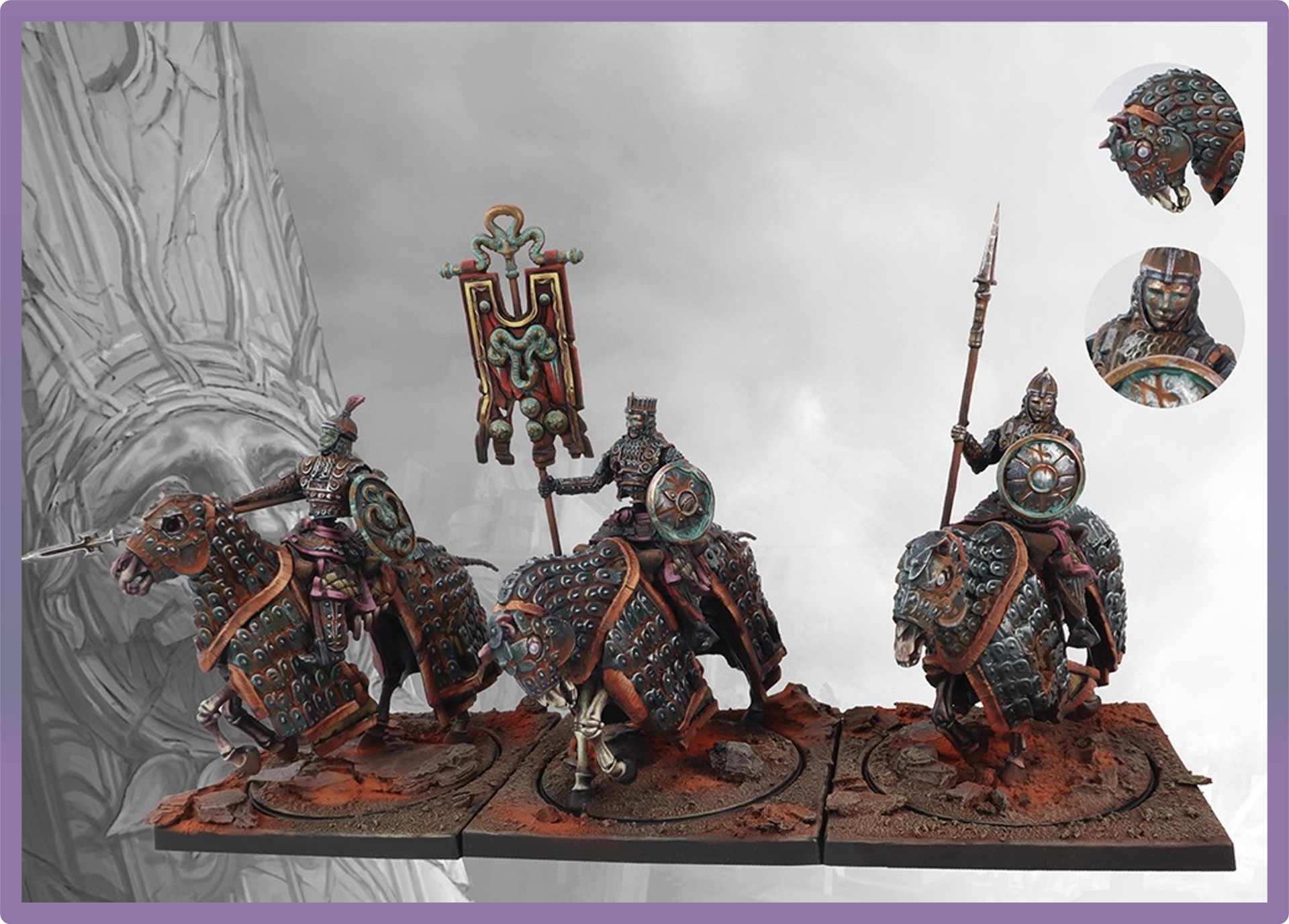 Armored from head to toe, Kataphraktoi were the precursors to the noble ideal of the knight. Raised in undeath these horsemen become a terrifying force on the battlefield, their effectiveness compounded by the fact neither the horse nor the rider know fear or pain, allowing them to slam into enemy formations with a ferocity no mortal foe could match.