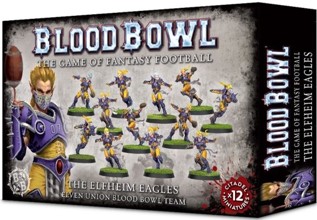 This multi-part plastic kit contains the components needed to assemble The Elfheim Eagles, an Elven Union Blood Bowl team. The team consists of 6 Linemen (4 of which are actually Linewomen), 2 Blitzers, 2 Throwers and 2 Catchers, each of whom are as impressively-cheekboned and beautiful as you might expect from an Elven team. The heads and shoulder pads are interchangeable between the miniatures, meaning your team can look unique.
