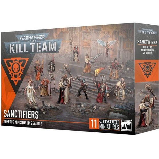 This multipart plastic kit builds 11 Sanctifiers. These miniatures can be used as zealous Sanctifiers operatives in games of Kill Team, or fielded in an Adepta Sororitas army in games of Warhammer 40,000. The kit includes options, accessories, and different heads to customise your kill team, plus components to build specialists like the flame-loving Conflagrator, stealthy Death Cult Assassin, unnatural Miraculist, and more.