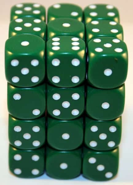 Dobbelsteen D6 12mm Opaque Green/white Set (36 stuks)