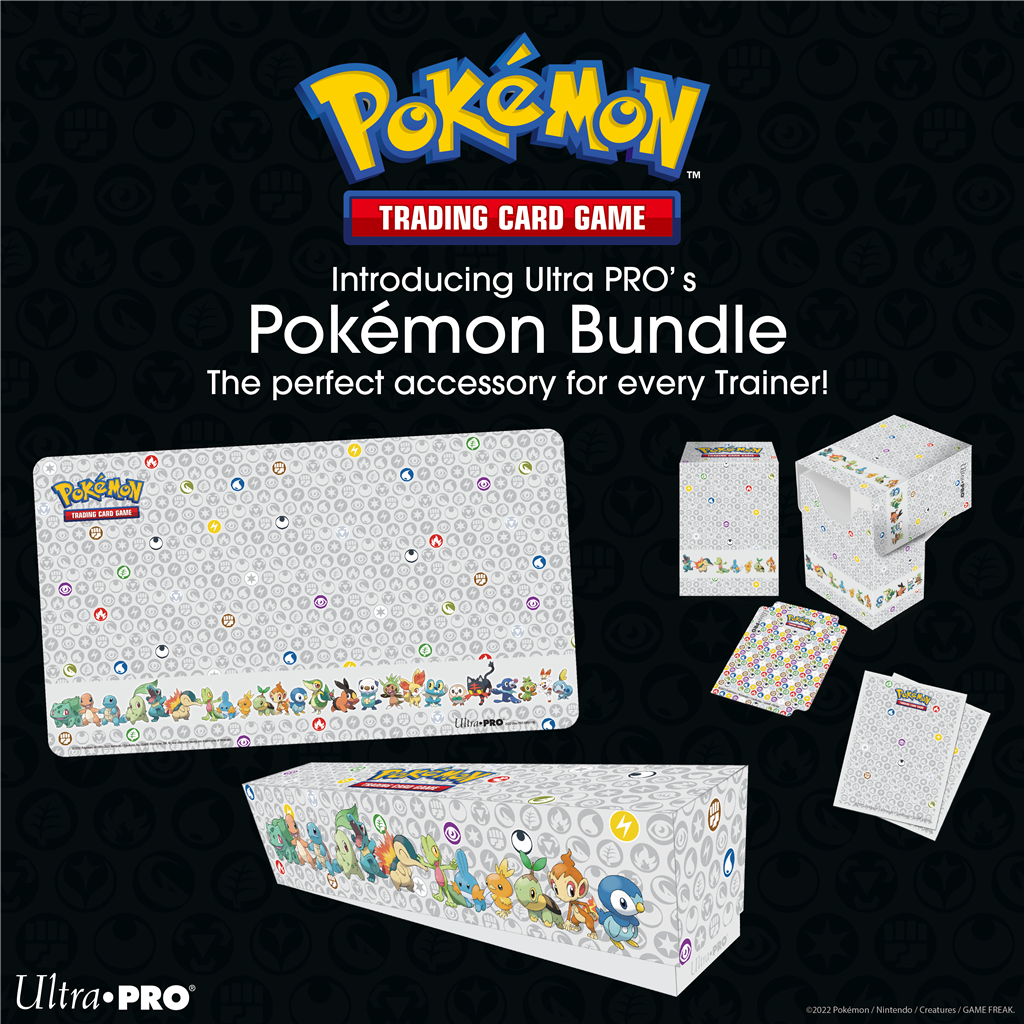 Deze fraaie Pokémon First Bundle is een grote opbergbox voor ruim 700 kaarten inclusief 1 speelmat, 65 Deck Protector® sleeves en 1 Deck Box® met divider.