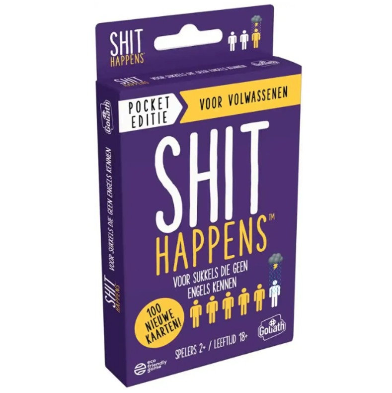 Pocket editie van het bekende 18+ partyspel Shit Happens. Shit Happens is een hilarisch en weerzinwekkend, maar levensecht partyspel. Je komt allerlei ongewenste situaties tegen die je moet rangschikken op je “lane of pain” die loopt van 1 tot 100. Wat is erger? “Je vader in z’n nakie zien” of “elke nacht in bed plassen”? Verzamel 10 ellendige kaarten en win het spel! Deze nieuwe editie heeft 100 nieuwe kaarten.