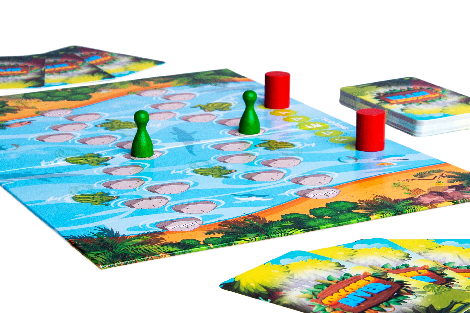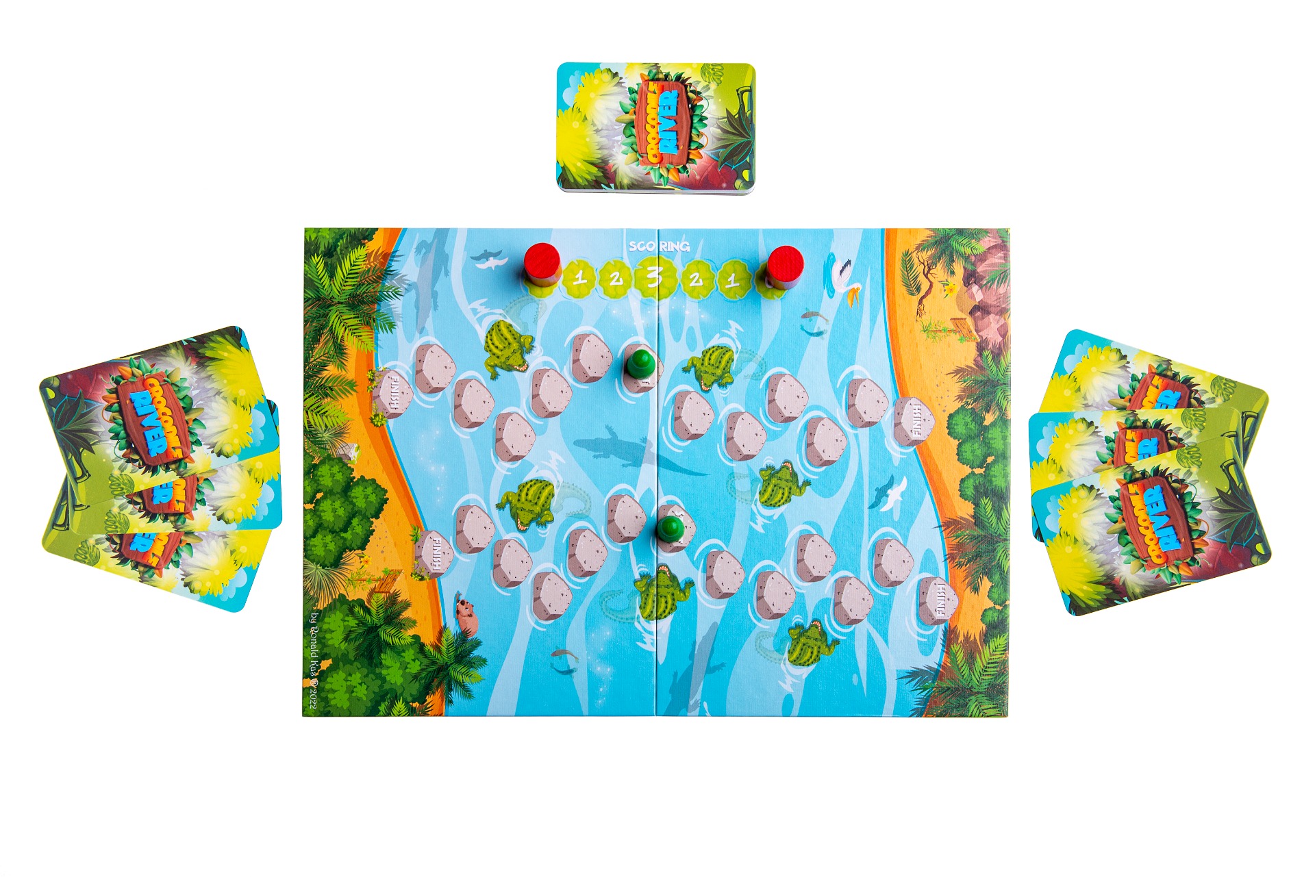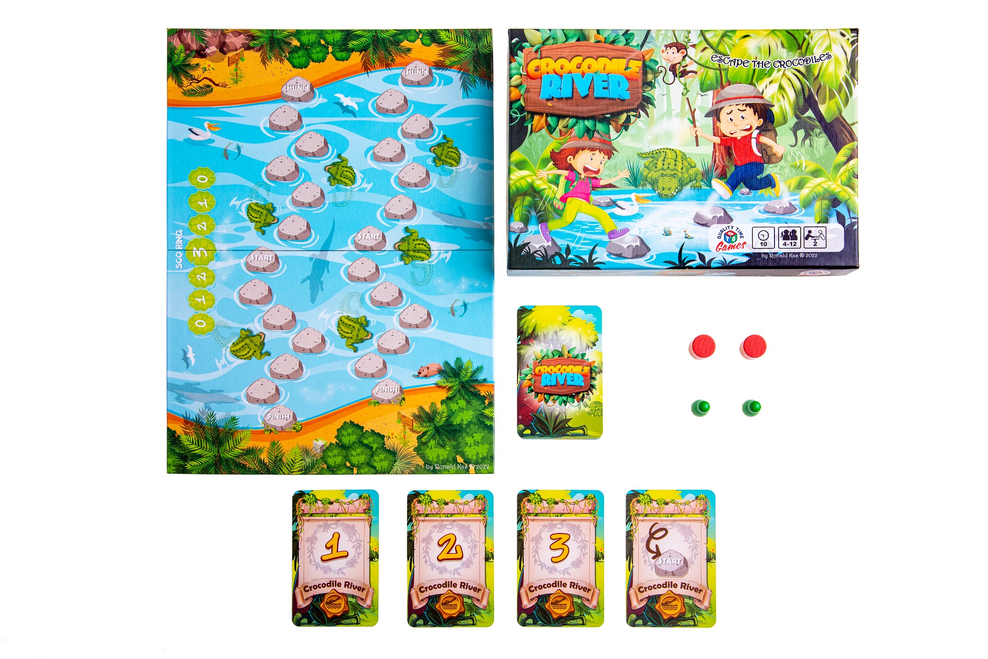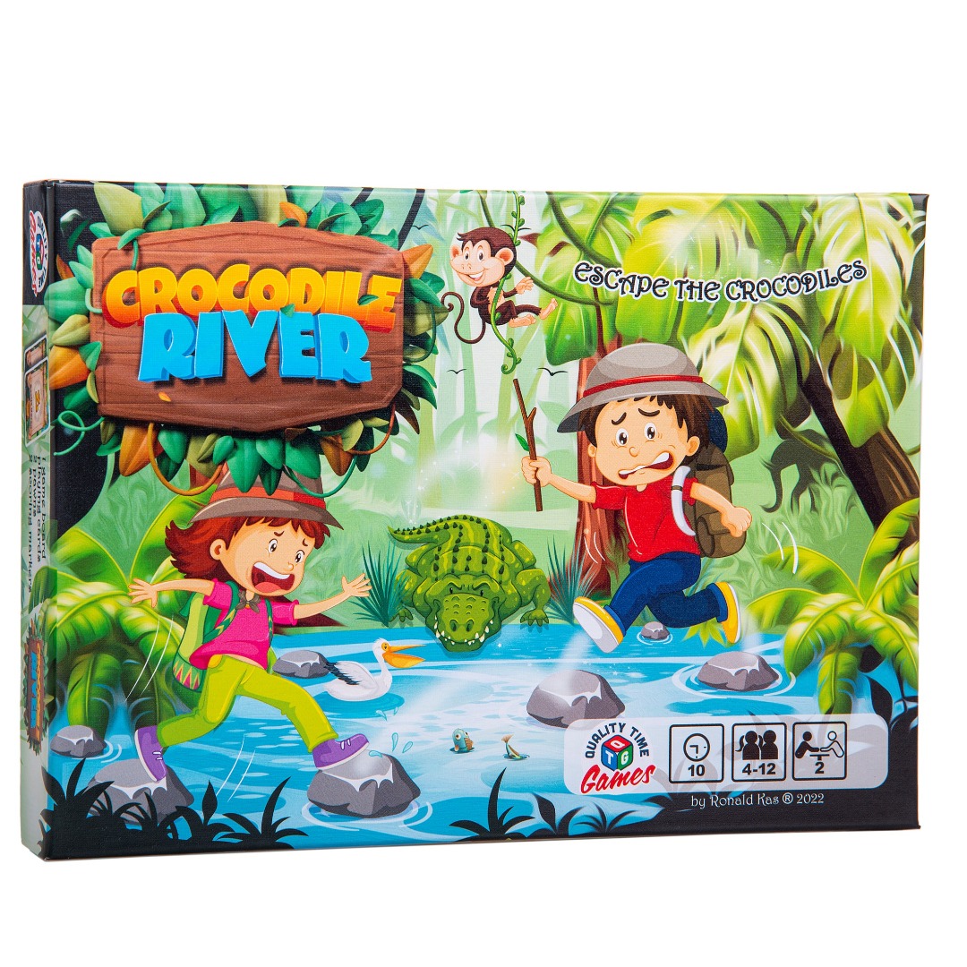 Slaag jij erin om als eerste aan de krokodillen te ontsnappen en de oever van jouw tegenstander te bereiken? Door slim gebruik te maken van de kaarten en steeds met de juiste pion te lopen kan jij je tegenstander verslaan!