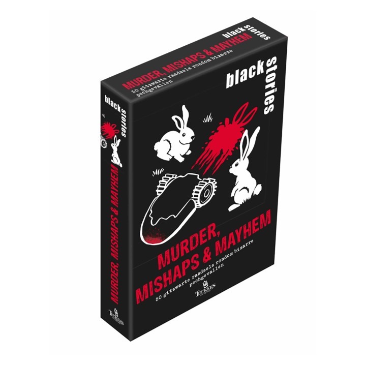 Gitzwarte raadsels, hilarische doodsoorzaken, ongelooflijke ongelukken ?Dit zijn black stories! Want de zwartste verhalen worden nog steeds bedacht door de realiteit. Lukt het jullie om de echte gevallen van bizarre pech op te lossen? Extra spelvariant! Verdien speelfiches door het stellen van slimme vragen.