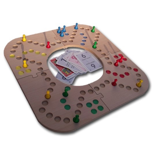 Het vierpersoons houten Keezbord wordt compleet geleverd. In de doos zitten: