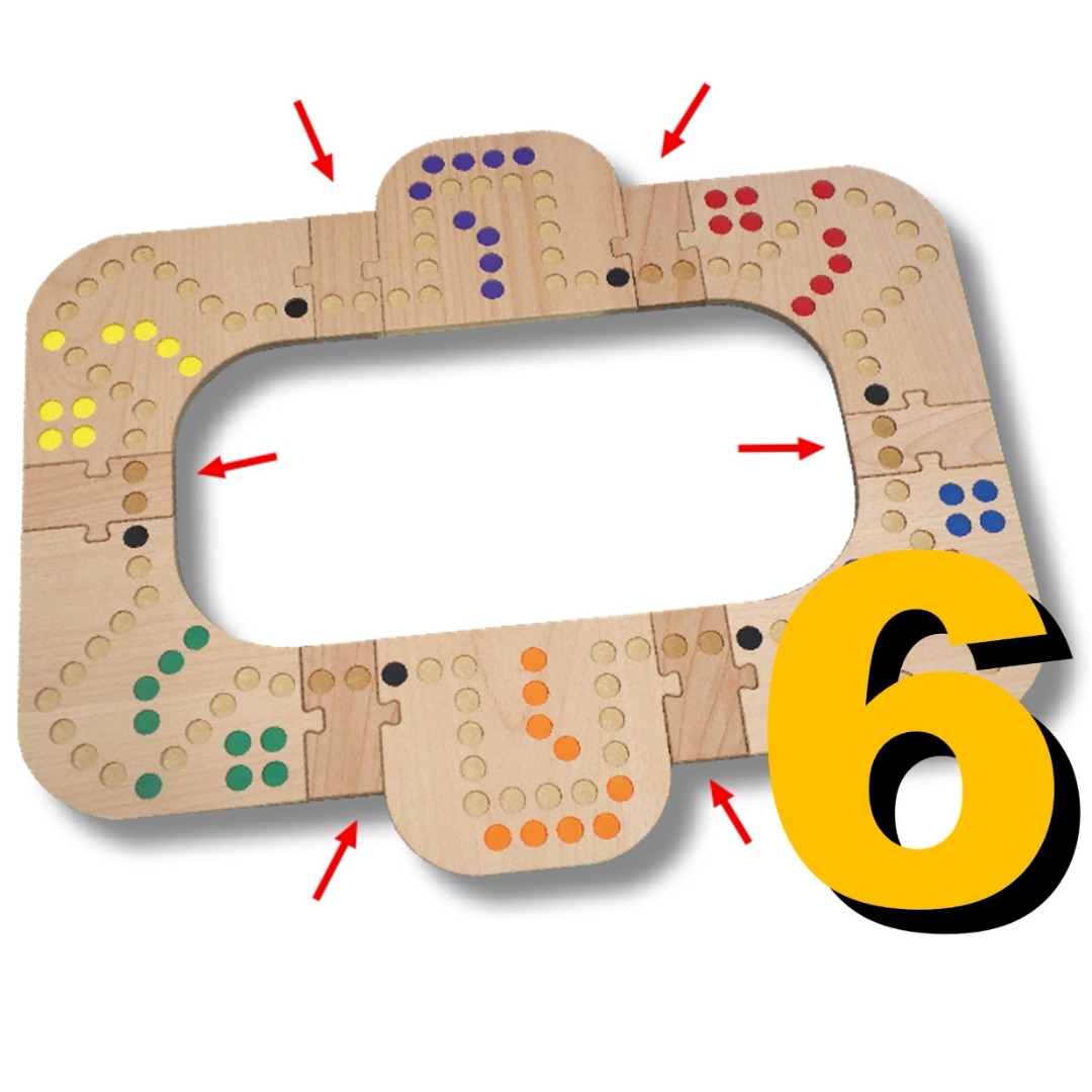 Verkrijgbaar in hout en kunststof, inclusief tokken speelkaarten voor 6 spelers.