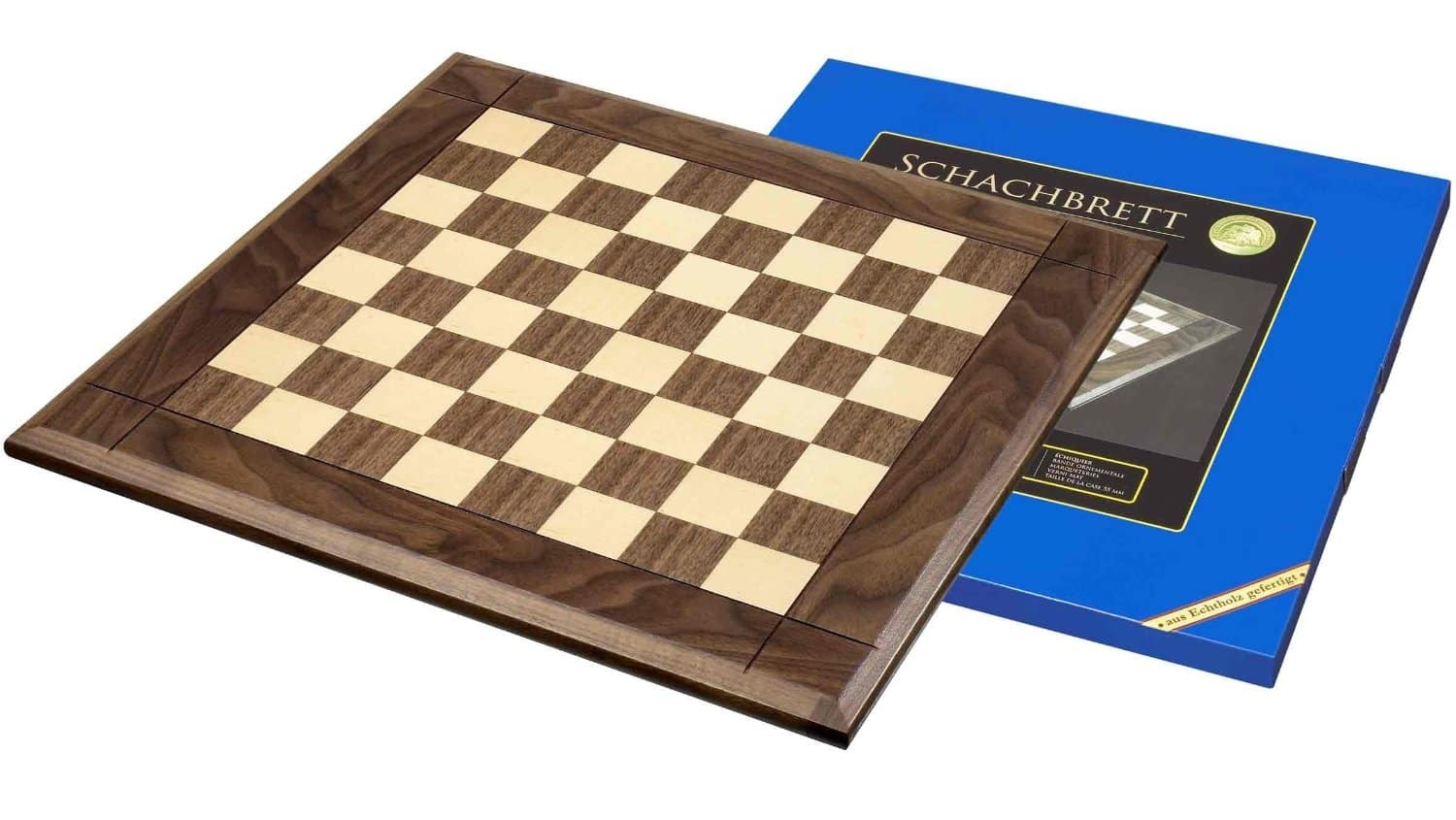 Schaakbord, walnoot en esdoorn, veld 50 mm, bord 53 x 53 cm, zonder randbeschrijving, 20 mm dik
