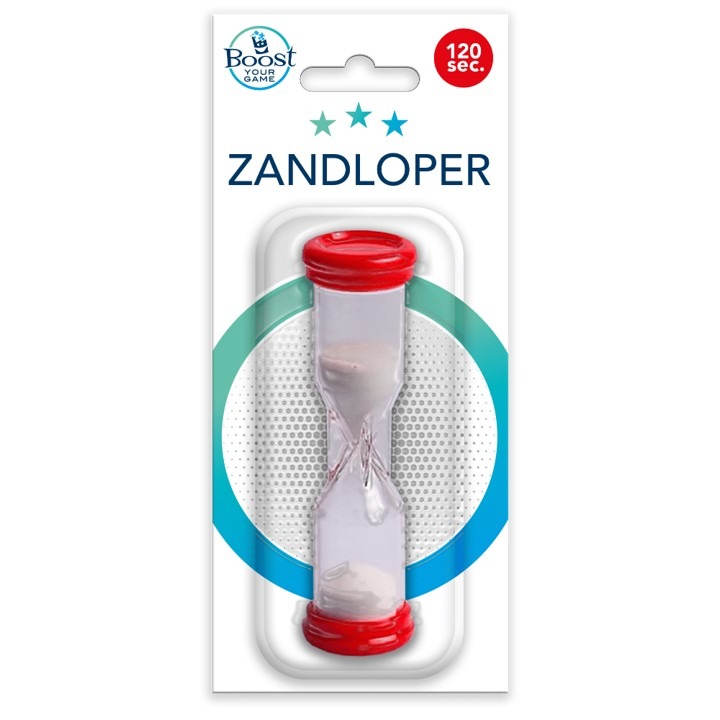 Zandloper met een looptijd van 120 seconden in een blisterverpakking