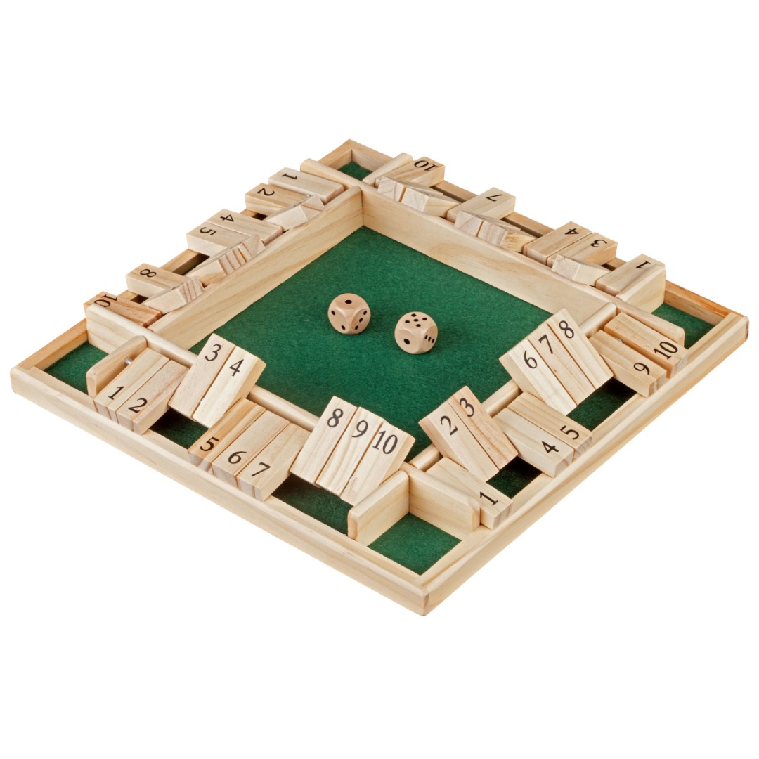 Met 2 houten dobbelstenen