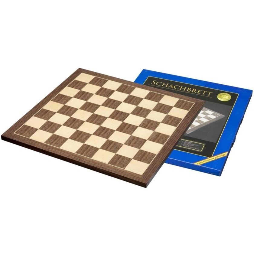 Schaakbord, walnoot en esdoorn, veld 50 mm, bord 45 x 45 cm, zonder randbeschrijving, 13 mm dik.