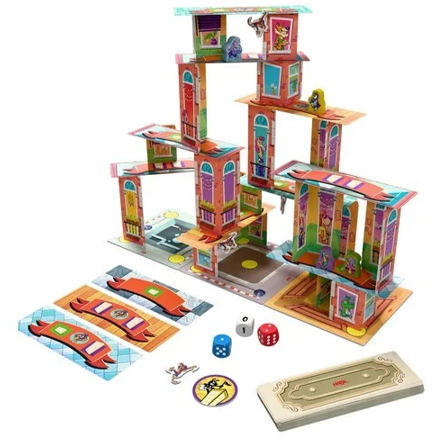 Er zijn problemen in Rhino City! Verschillende superhelden vechten het uit op de daken, maar pas op, want deze wolkenkrabbers zouden zomaar eens in kunnen storten! In dit spannende behendigheidsspelletje bouw je wolkenkrabbers van kartonnen onderdelen. Vervolgens ga je met jouw gekozen superheld het gevecht aan tegen de andere superhelpen. Bouw de wolkenkrabbers voorzichtig op en zet je held tactisch neer, want één verkeerde beweging zou de laatste kunnen zijn. Rhino Hero - Super Battle is een spannend spel voor de hele familie en al geschikt voor kinderen vanaf 5 jaar. Heb jij een vaste hand en stalen zenuwen? Dan word jij misschien wel de winnaar!