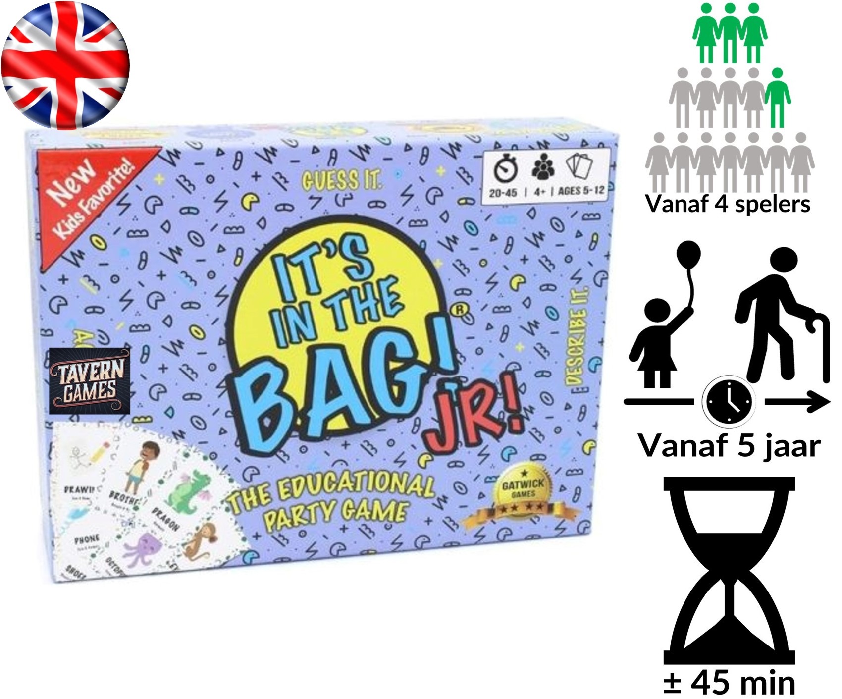 Dit spel heeft een engelstalige handleiding, speelkaarten en mogelijk teksten op het speelbord.