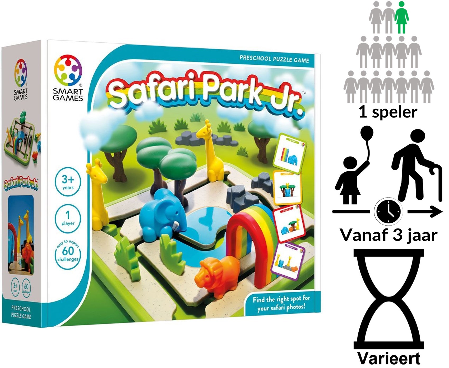 Krijg jij de dieren in de perfecte fotopositie? Een 2-in-1 leerspel voor kleuters: puzzel of speel en laat je fantasie de vrije loop.
