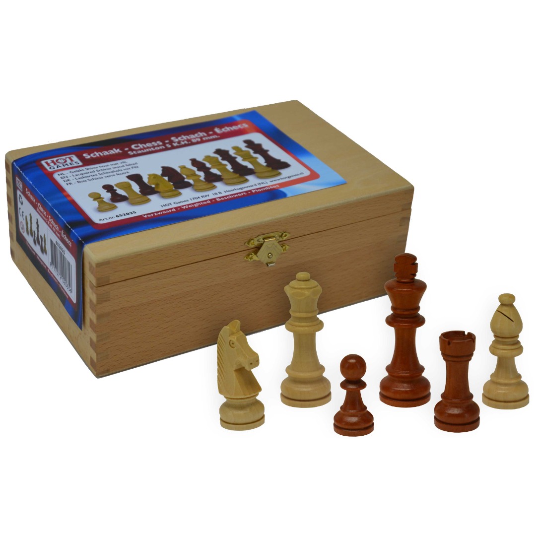 Gesneden uit Schimahout, blank / bruin gebeitst.Enkelvoudig verzwaard, met vilt.Koninghoogte 89 mm. Totaal gewicht 495 gram.Verpakt in blank gelakte beukenhouten kist met inlay.